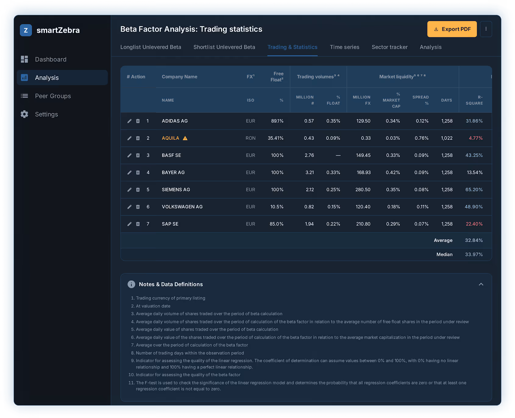 Whether for initial acquisition, quarterly NAV calculation, or exit scenarios, smartZebra delivers valid market data instantly. Ensure your valuation models are fed with defensible, up-to-date-time inputs without the overhead of manual research or expensive terminal licenses.