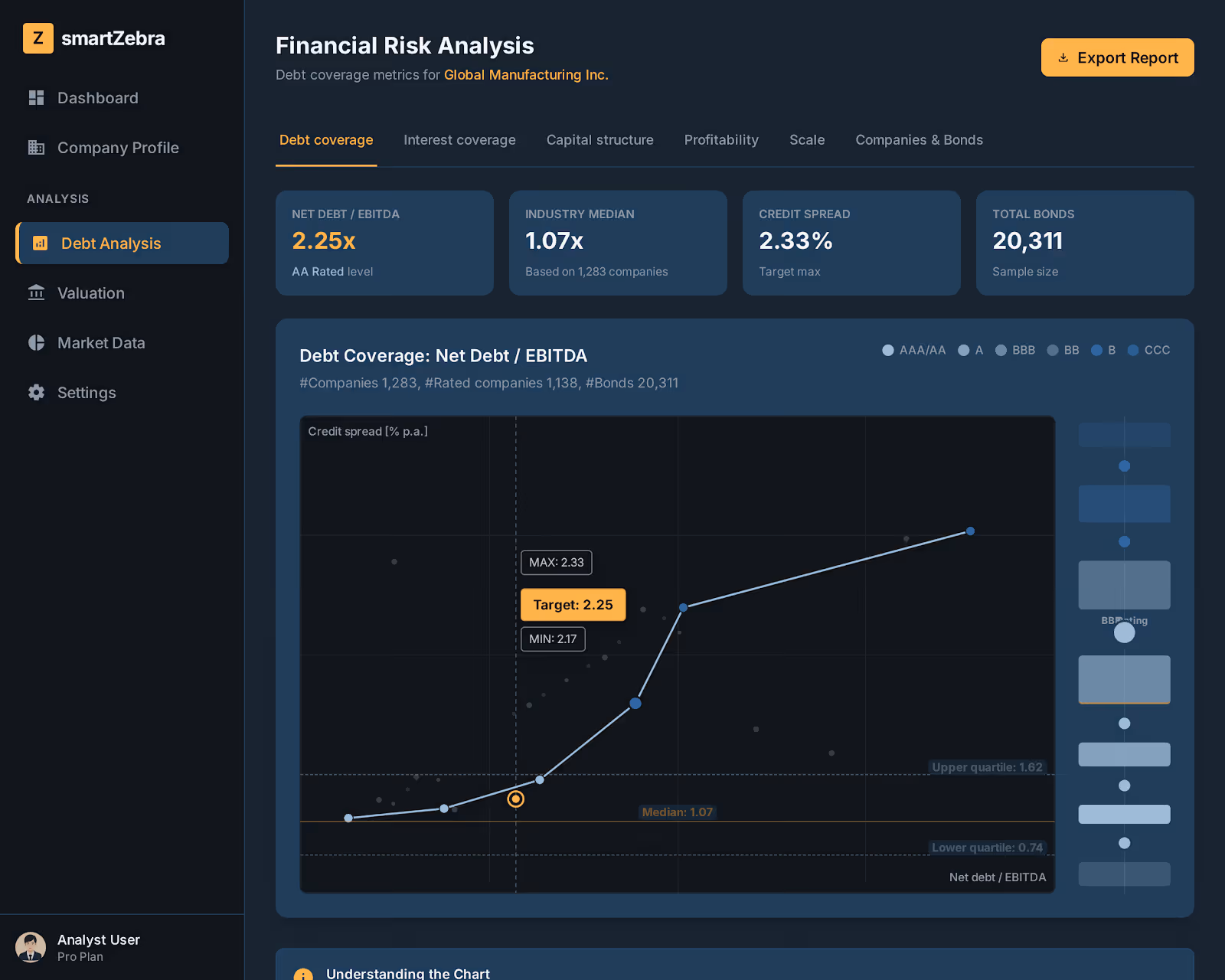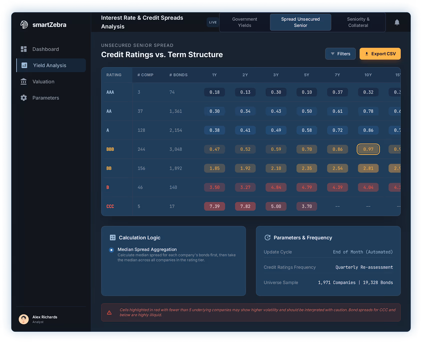 Fine-tune your analysis: Filter by currency, ranking, and collateral of the bonds used in the calculation. This will give you results that are ideally suited to your valuation scenario.