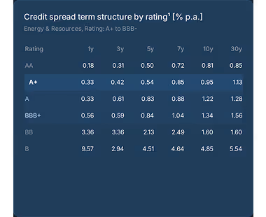 Calculate credit spreads individually for maturities between 1 and 30 years. This allows you to find the appropriate interest rate for any financing structure – from short-term working capital loans to long-term loans.
